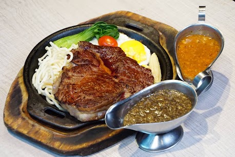 D2024-04-23原本是看到別家的美食介紹文,但不確定是不是該名重新營業,意外的走進這間餐廳,在滿是觀光客的西門町,一般來說餐廳的水準都不抱太大期望,這間牛排招牌不是很明顯,店裡也沒有其他客人,但都來了就吃看看吧! 我們點了沙朗牛排五分熟還有雪花豬排, 出乎意料的好吃!肉質軟度剛剛好,也吃得出肉香味,厚度相當有誠意、店家調的綜合醬(蘑菇+黑胡椒)口味非常合胃口,不會太甜也很有胡椒香氣,麵條是義大利麵,份量相當足夠,配菜是花椰菜、玉米筍、香菇很不錯 自助吧有免費供應的濃湯,也很好喝,奶油味很重,毫不敷衍的味道,店家現烤蒜香奶油吐司是一大塊的厚土司,很好吃!真的還可以續 飲料就是基本的咖啡、汽水飲料都有 還有比較特別的玉米餅乾小點可以無限取用 以平價牛排來說,肉質水準有85分,整體而言吃起來是非常滿足的!店面簡簡單單不起眼,但吃得出用心的美味 ,很推薦大家!